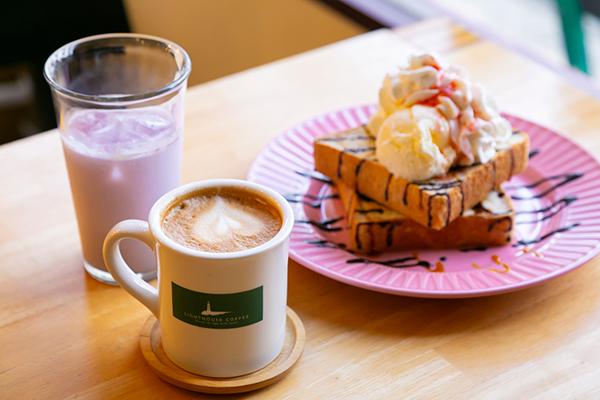 コーヒーはもちろん、紫芋のラテやハニートーストなどメニューのバリエーションも豊富