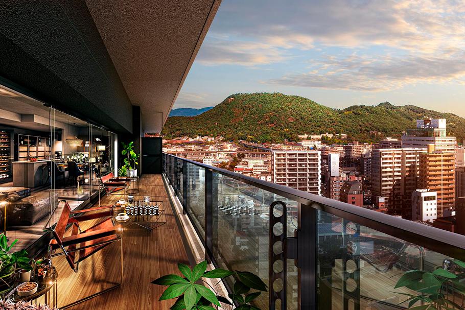 ※1:計画段階の図面を基に描き起こした外観完成予想CGに現地18階相当から撮影(2023年11月)した眺望写真を合成・加工したもので実際とは多少異なります。なお、外観の細部・設備機器及び周辺建物等は一部省略又は簡略化しております。眺望は階数・住戸によって異なります。眺望・周辺環境は今後変わる可能性があり将来にわたって保証されるものではありません。