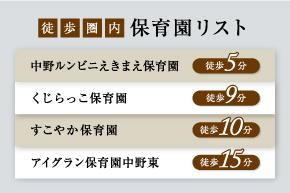 JR「安芸中野」駅前をはじめ、本物件周辺には保育園が充実。無理なく送迎できる距離に揃っているのは、共働き世帯にとって嬉しいポイントです