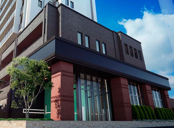都市ライフを満喫するのにふさわしい洗練の佇まいのエントランス完成予想CG※3
