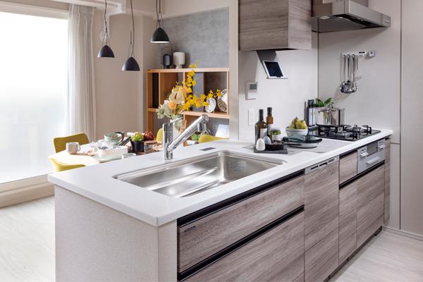 明るい陽ざしに包まれ、洗練された空間美が住み心地を高めます。またウォールドアの採用により視覚的な広がりをかなえながら洋室の独立性も確保したプランも見どころ。機能性と美しさも備えた洗面カウンターなど水周りの設備、豊富な収納もぜひ確認を。
