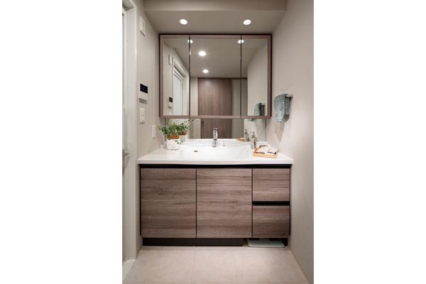 まるでホテルのような上質感。ワイドな洗面カウンターがうれしい洗面室。鏡裏は全収納