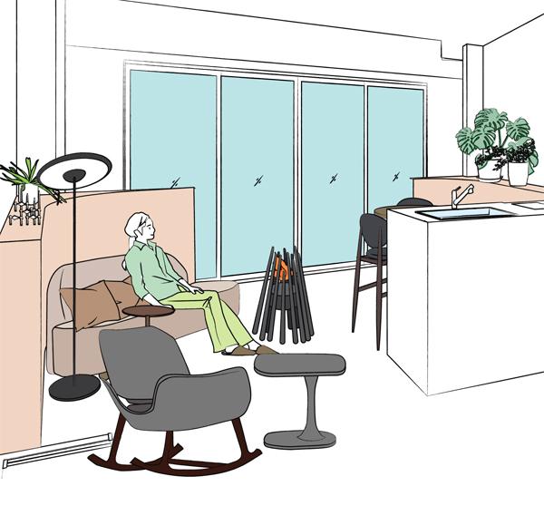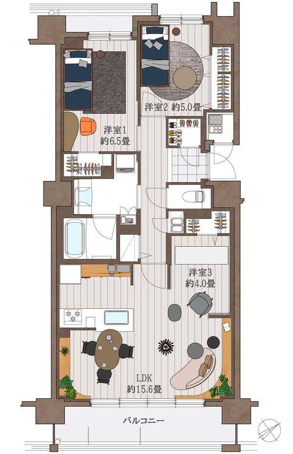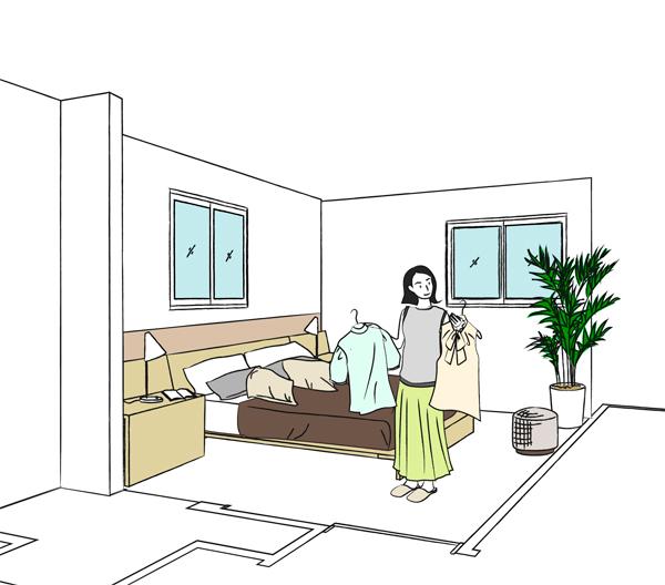 ※2.本コンテンツは、イラストにてお部屋の使い方やインテリアのイメージをご紹介するものです。実際の販売住戸にはイラスト記載のインテリア、小物等は設置されておりません。イラストについては説明図であり、実際の住戸内と異なる部分がございます。実際の住戸については間取り図にてお確かめください。イラスト記載の内容については、リフォーム工事(有償・申込期限有り)が必要となる場合がございます。専有部分の使用及び修繕、リフォーム等を行う際には管理規約上の制限がございます。詳しくは係員までお尋ねください。