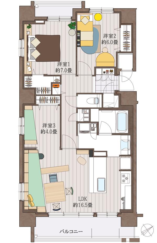 Eタイプ・3LDK・77m2台に夫婦二人暮らし