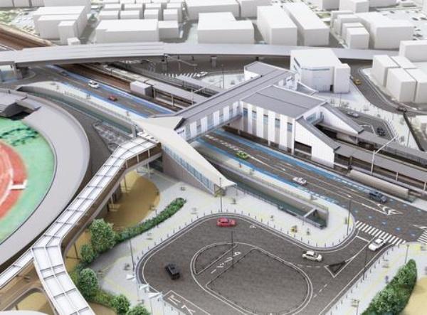 新駅からアリーナまでの「連絡デッキ」完成予想図(※5)