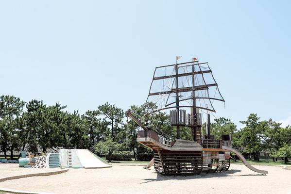 帆船の大型遊具で海賊気分に。浜甲子園運動公園(徒歩8分、約620m)