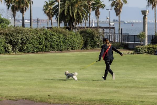 気持ちの良い芝生が広がる鳴尾浜臨海公園には、海釣り広場も