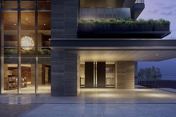 「サウスエントランスは、昼は庇上の植栽が陰影をつくり、夜は2階ブライトラウンジの灯りが玄関を浮かび上がらせます。駅からの光のラインをなぞりエントランスまで時刻で変化しながら『あなたの帰りを待つ』演出がされています」