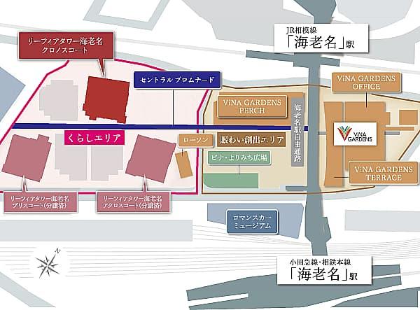 3.5haの駅間開発の一部として誕生/ViNA GARDENS開発概念図
