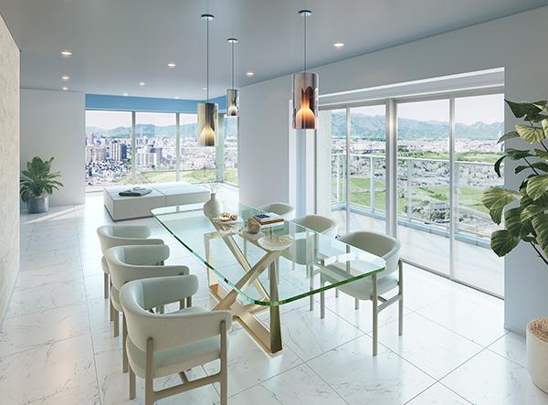 ※掲載の各完成予想CG・敷地フロア概念図は計画段階の図面を基に描き起こしたもので、実際とは多少異なります。また、変更となる場合がございます。雨樋、給気口、スリーブ等、一部再現されていない設備機器がございます。周辺の建物、電柱、電線、標識、ガードレール等は省略またはライン等で表現しております。植栽は計画段階のものであり、変更となる場合がございます。また、入居時を想定して描かれたものではございません。葉の色合いや枝ぶり、樹形は想定であり、竣工時には完成予想CG程度には成長しておりません。家具・調度品・オブジェ等は実際に設置されるものと異なる場合があります。住戸内に表現した照明・家具・カーテン・植栽は販売価額には含まれておりません。※スカイラウンジ完成予想CGは、計画段階の図面を基に描き起こしたものに現地17階前後の階層(約51m)より撮影(2025年1月)した眺望写真をCG合成したもので実際とは多少異なります。また、変更となる場合がございます。家具・調度品・オブジェ等は実際に設置されるものと異なる場合が有ります。眺望は将来に渡って保証されるものではございません。
