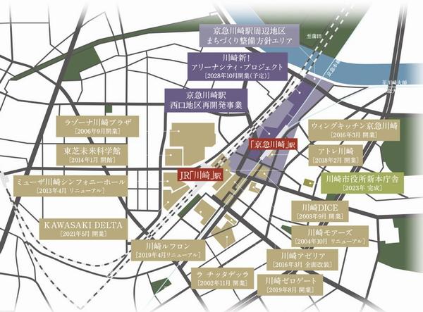 川崎駅周辺では2000年代から再開発機運が高まり、継続的な大規模開発が実施されてきました。2004年に「ミューザ川崎シンフォニーホール」(約2540m)が、2006年に「ラゾーナ川崎プラザ」がオープンし、主に西口側の変化がメディアの注目を集めましたが、いま再開発のステージは東口側へ移り、京急川崎駅西口地区再開発事業(2030年度完了予定)が進行中。同時に行われている「川崎新! アリーナシティプロジェクト」では1万5000人収容可能のアリーナを中心に、ホテル・文化施設・公園等を備えた「アリーナシティ」が2028年秋開業予定で、川崎エリアは今後ますますパワーアップを遂げることになります。