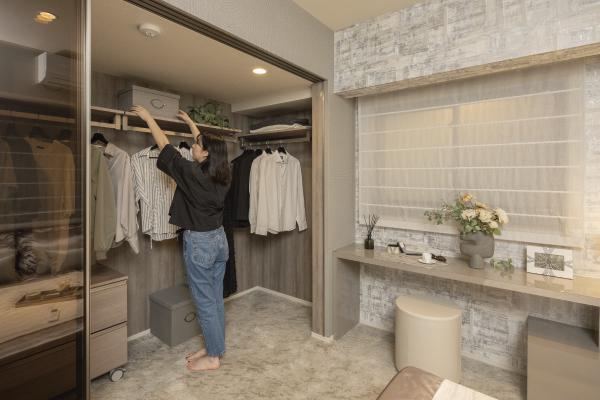 「間取りや設備は、使いやすさにこだわって作られていて満足しています。特によく考えられた収納が魅力。寝室のビッグウォークインクローゼットもいいですよね。二人とも服が増えがちなタイプですが、これなら全部すっきり入るので、収納家具を買い足す必要はなさそうです。」(N様夫)
