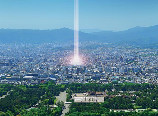※1:左/外観完成予想図、右上から/京都御苑、元離宮二条城、東山如意ケ嶽(大文字山)約14.6km、BiVi二条。
