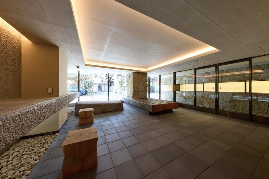 • 日々、目にしたり通りがかったりする建物共用部には、和の家屋や伝統工芸のエッセンスを再構築したデザインを採用。華美な装飾は避け、素材の肌理・質感にまでこだわることで、陰影豊かで奥行きのある静寂な空間を創り出しています。