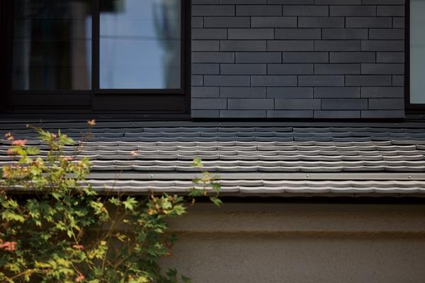淡路土が魅せるいぶし銀の和瓦が織り重なり屋根をつくる(外観※2)