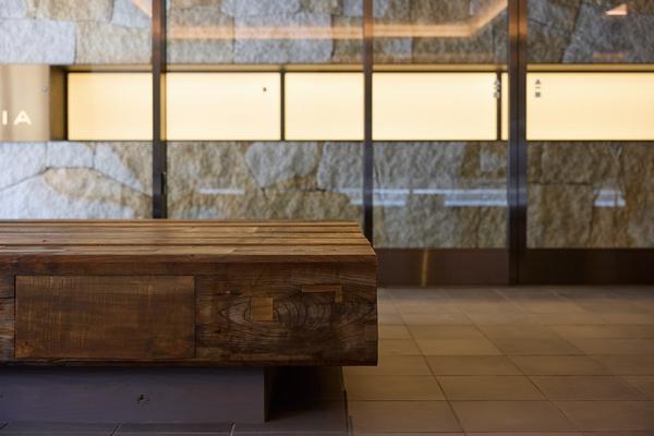 古材を用いたテーブルやベンチなど風情のある仕様(エントランスホール※2)