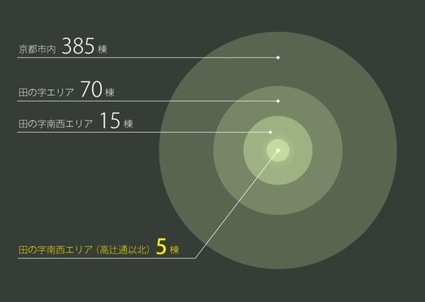 高辻通以北でのマンション出現率は約1.3%