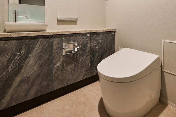 タンクレストイレ。手洗いカウンター付き