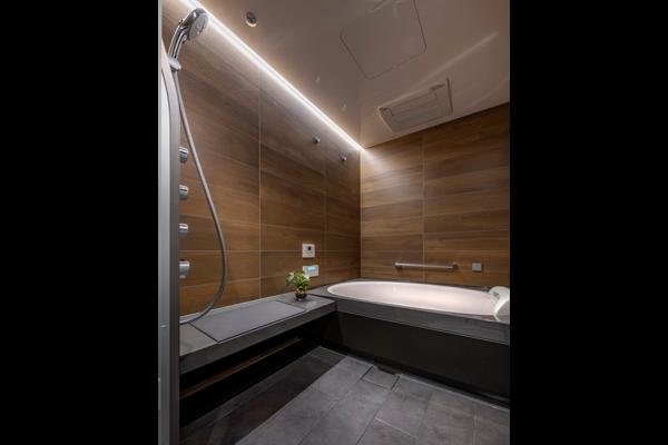 1.6m×2.4mのワイドサイズの浴室には、高級システムバスルーム「スパージュ(SPAGE)」を採用。循環するお湯で首や肩を温めリラックス効果を高める「肩湯」、頭上から降り注ぐ「オーバーヘッドシャワー」などを愉しめるリラックス空間です。