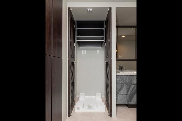 洗濯機置場に扉を設置。普段は閉めておくことで、生活感を隠すことができます