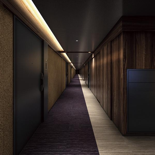 セキュリティとプライバシーへの配慮が行き届く、ホテルライクな内廊下設計(完成予想CG)