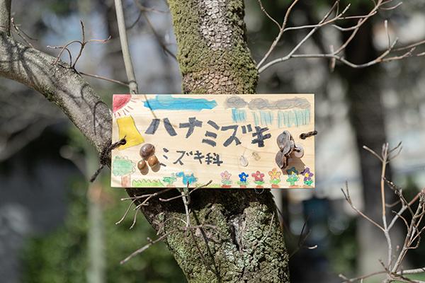 木町通小学校の生徒が作成した樹木プレート(北三番丁公園にて2024年3月撮影)