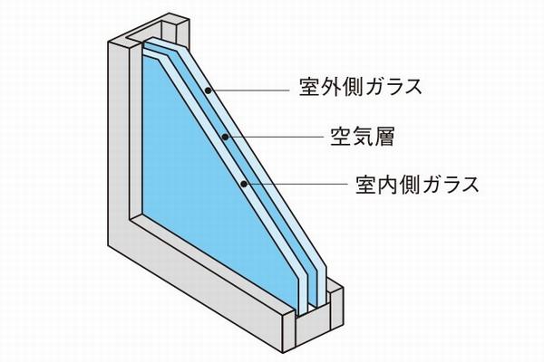 結露を防ぎ、住空間の冷暖房効率を高める複層ガラス(概念図)