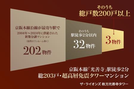 京阪本線沿線で駅徒歩2分以内、総200戸以上の新築分譲マンションの物件数(※4)