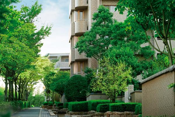 〈ジオ〉第1号となる「ジオ緑地公園」は、緑地公園に隣接する約48,000m2の敷地に、“人と自然とともに育ちゆく住空間”として、まちとトータルにデザインされました。時を経た今も色褪せることのない美しい佇まいから、住まう方々の満たされた毎日と、愛着ある暮らしぶりをうかがうことができます。