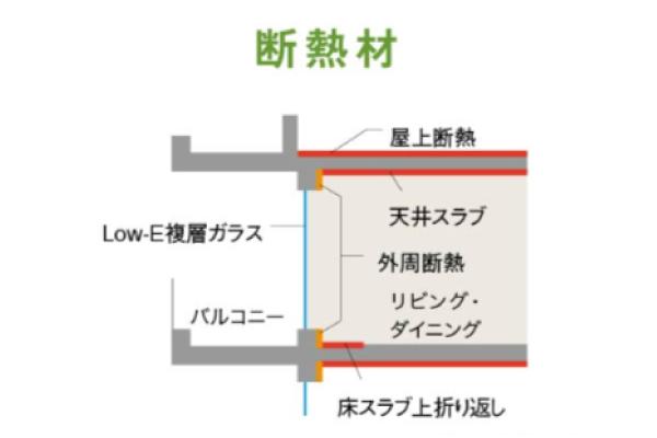 ZEHマンションの概念図※記載の断熱仕様(厚さ・範囲等)は住戸によって異なります
