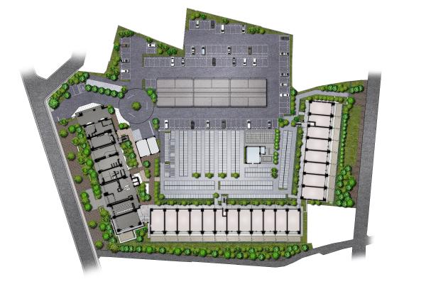 ※掲載の完成予想図は設計図書を基に描いたもので、色調や仕上げ材の表現、植栽は実際とは多少異なります。また、官公庁の指導や施工上の都合により設計・仕様・植栽等に変更が生じる場合があります。なお、植栽については、植栽計画を表現したものであり、特定の四季の開花状況を示すものではありません。 竣工時の植栽は完成予想図程度に成長しておりません。あらかじめご了承ください。