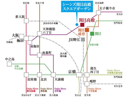 ※2.4駅4路線利用可とは、Osaka Metro谷町線「関目高殿」駅、Osaka Metro今里筋線「関目成育」駅、京阪本線「関目」駅、JRおおさか東線「JR野江」駅が利用可能であることを示します。