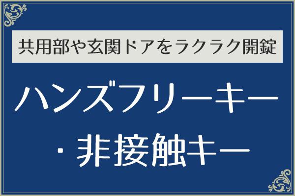 ハンズフリーキー・非接触キーの混在使用が可能な同物件。ハンズフリーキーは、キーをバッグやポケットに入れたまま共用部のオートロックを解除、玄関ドアは取っ手の起動ボタンを押せば解錠できます。非接触キーは、キーをリーダーにかざして共用部を解錠、玄関ドアはボタンを押してキーをかざせば解錠。荷物が多い時や子ども連れの時にも便利です。