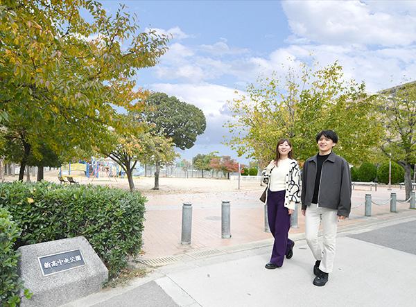 近隣には公園も豊富。中でも徒歩6分の新高中央公園は、大型の遊具がありきれいに整備された大型の公園で、子どもの遊び場にピッタリ。春には桜が咲くことで、お花見のスポットとしても人気です。徒歩8分の神崎川沿い遊歩道は、開放的な水辺のロケーションでジョギングやウォーキング、ペットのお散歩ができるスポット。都心近くでありながら、大きな公園や自然が身近にある点も、同物件の大きな魅力のひとつです。