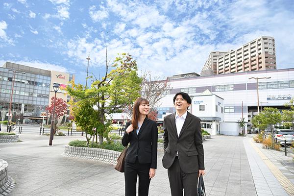 駅前が美しいことで、毎日の通勤も気持ちがよさそう(阪急「三国」駅前※1)
