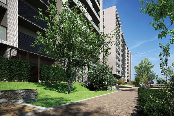 木洩れ日が心地の良い、ベンチのある「遊歩道」が住まいの目の前に。また、豊かな触れあいの場となる「藤白台けやき公園」も身近にあり、緑豊かなランドスケープを我が庭のように使いこなすことができます。