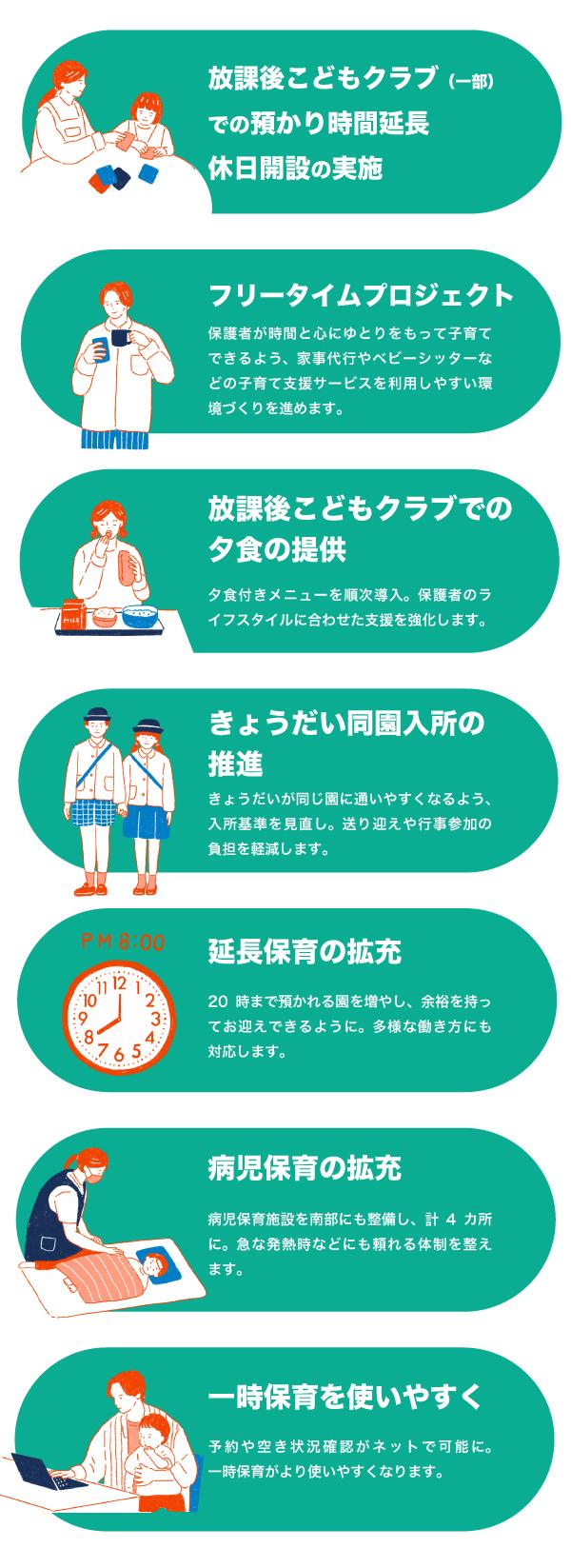病児保育施設を南部にも整備し、計4カ所に。急な発熱時などにも頼れる体制を整えます。