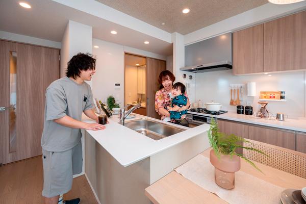 「キッチンに立ちながら子どもの様子が見える安心感がありますし、洗濯などの家事動線もとてもスムーズ。もともとは戸建て志向だったのですが、このマンションに住んで“マンションでも自由度の高い住まい方ができるんだ”と実感しました。住まいに対する印象が大きく変わりましたね」と笑顔で語ってくださいました。