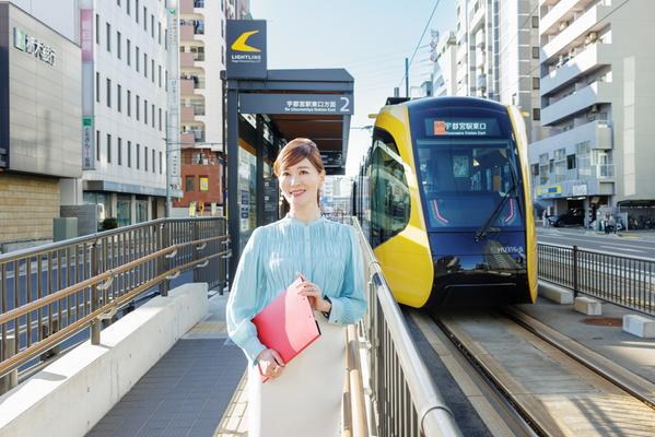 現地はLRTの停留場の中でも、宇都宮駅にほど近い「駅東公園前」停留場から徒歩3分の駅近立地。専用軌道を走るLRTは、大幅な遅延が発生しにくく走行音も静か。鉄道駅と違って駅構内の移動や階段の上り下りもないため、ベビーカーでもスムーズに移動できます。