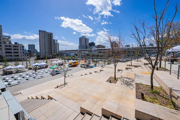 イベント等も行われる駅前に広がる交流広場「宮みらいライトヒル」(「宇都宮」駅前)