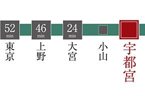 宇都宮は東北新幹線の停車駅。東京52分、大宮24分、郡山27分、仙台65分と東日本の主要都市へスピード直結可能。この広域アクセス力はビジネスシーンでも大きな強みに