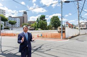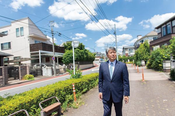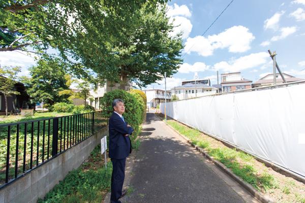 「つつじヶ丘の魅力は駅近でもこのような閑静な環境がある所」と岡本氏 建設地周辺