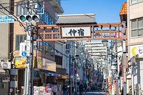 約140の店舗が連なる仲宿商店街(徒歩5分/約380m)