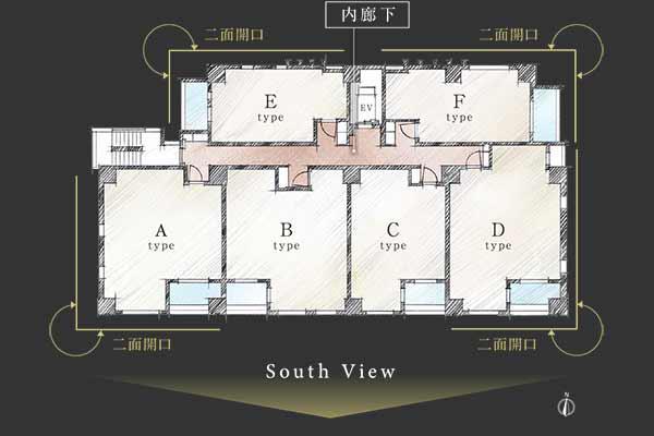 全住戸の約66%が二面開口かつ角住戸