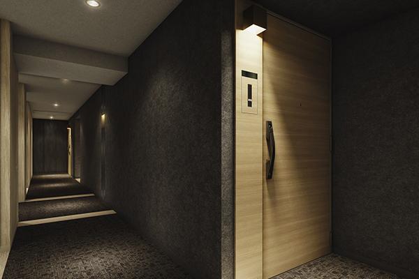 各フロアとも、外部からの視線や音、雨や風を防ぐ内廊下設計。また、立地特性を活かして全住戸の約66%で二面開口かつ角住戸を実現しており、駅近ながら静謐かつ開放的な空間であることは特筆すべき魅力。