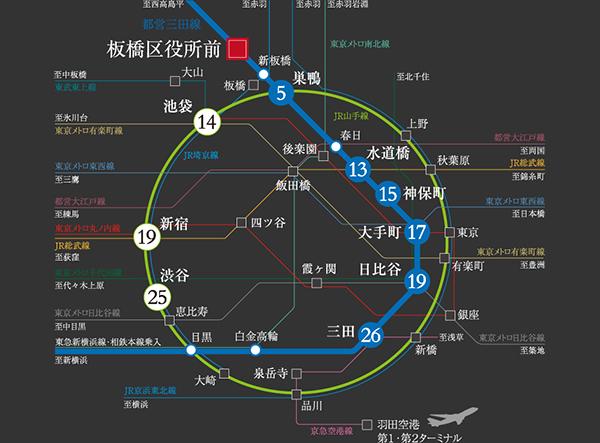 大手町駅直通、山手線や地下鉄各線との乗り換えも地下通路経由でスムーズに(路線図)