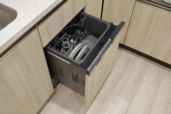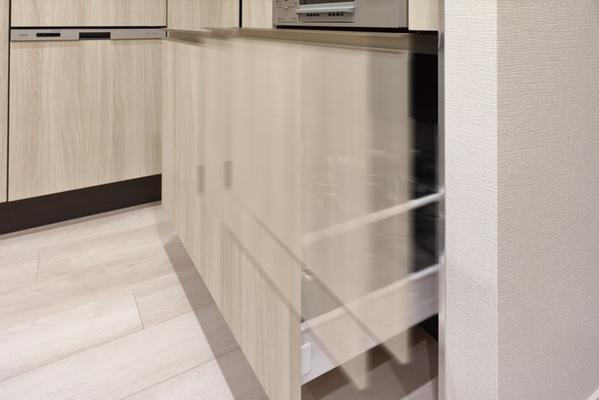日常になる、家族のためのキッチンです。大容量の吊り戸棚は、食器や調理器具、ストック品まで美しく収納。さらに、シンク横にコーヒーメーカーやトースターなどを置くのに最適な家電収納が標準装備されており、カウンター上を常にすっきりと広く保てます。ぜひ、モデルルームにご来場の上お確かめください。