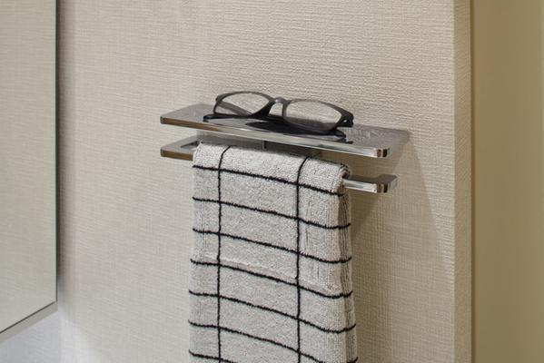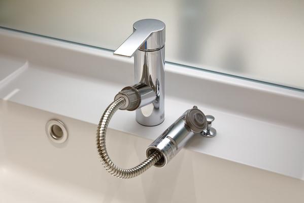 「多摩川シーズンズ」は、暮らしを快適に変化させる配慮が随所にあります。スロップシンクは、バルコニーでの植物の水やりや、窓掃除で活躍。玄関に設置したオールオフスイッチで、居室全部を消灯できるので、外出時に各部屋の照明を消して回る必要はありません。洗面ボールにはシャワー付水栓を採用しており、洗顔や洗髪がラクにできるほか、掃除の際もボウル全体が手軽に洗い流せます。さらに、洗面室のタオル掛けは、時計や眼鏡等が一時置きできるカウンター付。至るところに日々の快適さを生む工夫があります。