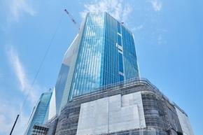※外観完成予想CG(1)はシーフォートスクエア(約390m)の位置より現地(北西)方向を撮影した写真(2024年7月撮影)に計画段階の図面を基に描き起こした建物完成予想図を合成しCG加工したもので実際とは異なります。変更となる場合がございます。