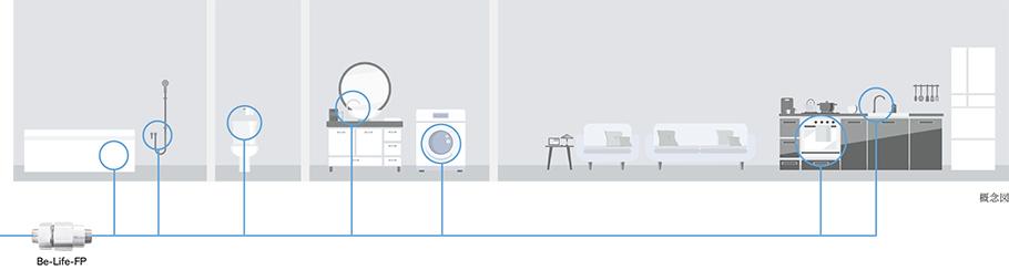 家中の全ての場所にウルトラファインバブル(R)水を供給(概念図)